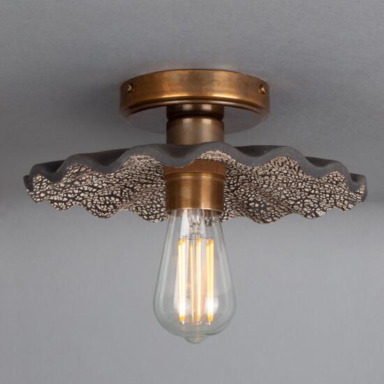 Crafted from ceramic, its red iron finish displays warm, earthy colors with a natural crackled look. The gently rippled shade adds depth and personality, while the exposed bulb highlights its raw, artisan feel. Hanging from a simple cord, this pendant light offers a subtle charm.